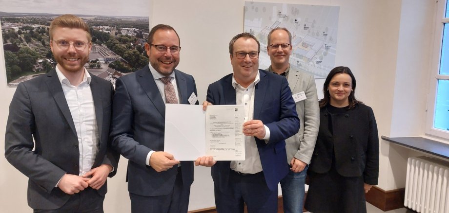 Die Förderzusage nahm Oliver Krischer, Minister für Umwelt, Naturschutz und Verkehr des Landes NRW, heute zum Anlass, nach Eschweiler zu kommen und den Förderbescheid persönlich an Bürgermeister Patrick Nowicki zu übergeben. Minister Oliver Krischer betonte: „Das Innovations- und Gewerbezentrum hat das Potenzial, zu einem Leuchtturm für einen erfolgreichen Strukturwandel im Rheinischen Revier zu werden und in der Praxis zu zeigen, wie zirkuläres Bauen funktioniert.“