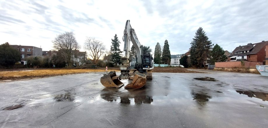 Der Abbruch der Willi-Fährmann-Schule ist abgeschlossen. Wenige Tage vor Weihnachten sind die Arbeiten an dem bei der Flutkatastrophe vom 14. und 15. Juli 2021 schwer beschädigten Gebäude planmäßig beendet worden. In einem letzten Schritt wurde die Bodenplatte herausgerissen, das getrennte Abbruchmaterial abtransportiert und das gesamte Gelände provisorisch verfüllt und planiert.