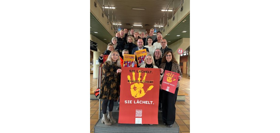 Auch die Stadt Eschweiler beteiligt sich in diesem Jahr an der bundesweiten Mitmachaktion „Wir brechen das Schweigen“. Mitarbeitende der Stadtverwaltung setzten gemeinsam ein Zeichen gegen geschlechtsspezifische Gewalt und machten deutlich: Gewalt gegen Frauen ist kein Einzelfall und nicht zu tolerieren. Jede Frau hat das Recht auf Sicherheit, Respekt und ein Leben ohne Gewalt.