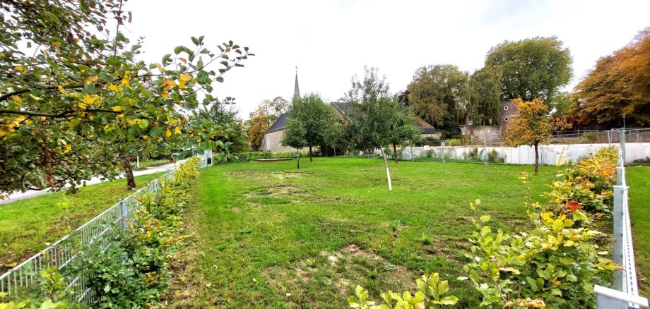 Daraufhin hat die Stadt Eschweiler die Fläche angepasst: Der Zaun wurde geöffnet und der Sandkasten überarbeitet. Außerdem wurden einige Bänke aufgestellt. So entstand ein geschützter Bereich, in dem Kinder weiterhin spielen und sich austoben können. Auch die umzäunte Wiese mit den Obstbäumen lädt zum Spielen und Verweilen ein.