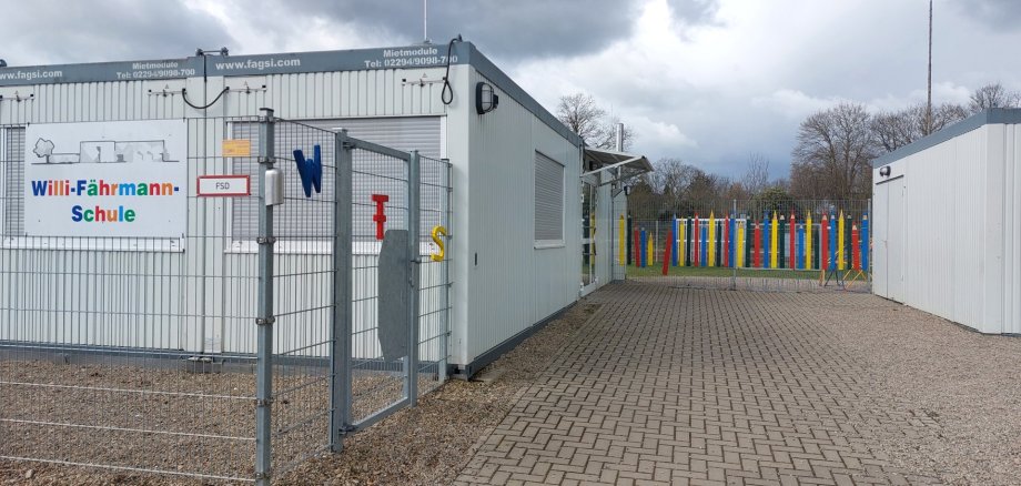 Am Ersatzstandort der Willi-Fährmann-Schule an der Franz-Rüth-Straße werden in den kommenden Tagen zehn Einzelcontainer ausgetauscht. Es handelt sich um das Büro der Schulleitung, das Sekretariat, den Computerraum und den Raum für Gespräche. Grund für den Austausch sind Feuchtigkeitsschäden.