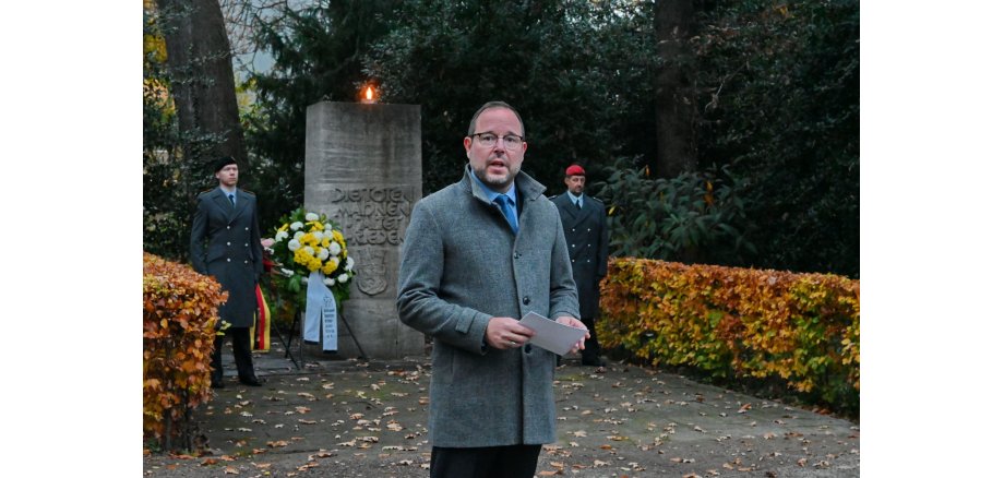 Bürgermeister Patrick Nowicki erinnerte in seiner Ansprache an die Betroffenen und mahnte zugleich, wie wichtig es ist, die Demokratie zu schützen: