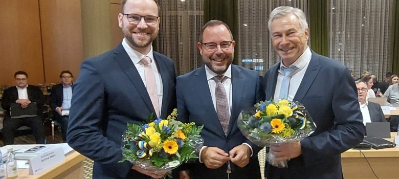 Patrick Nowicki nutzte die konstituierende Ratssitzung, deren Leitung er nach der Vereidigung übernahm, um seiner Vorgängerin Nadine Leonhardt für ihren Einsatz als Bürgermeisterin in den vergangenen fünf Jahren zu danken.
